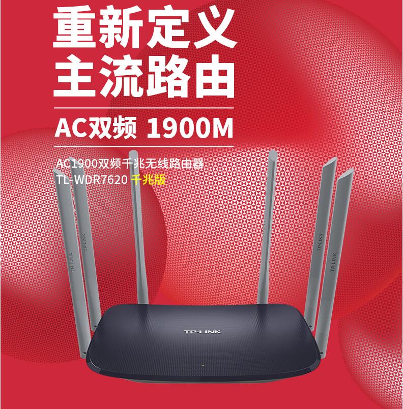 TP-LINK千兆無線路由器5G雙頻AC1900M普聯(lián)家用高速WIFI光纖大戶型穿墻電信移動(dòng)寬帶TL-WDR7620